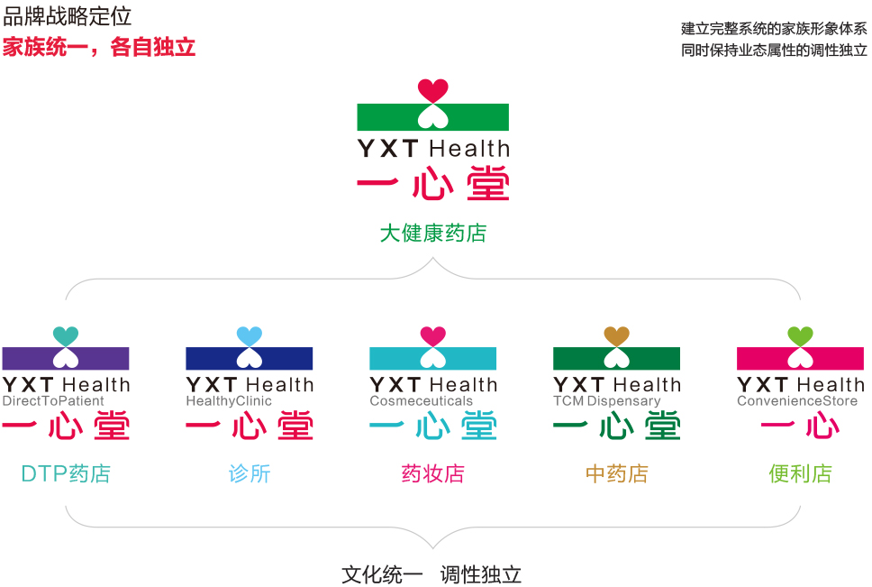 未來多元化發(fā)展是一心堂的必由之路,為承載未來多元業(yè)態(tài)布局,更好地與品牌標(biāo)志與文化進(jìn)行鏈接,我們進(jìn)行了個(gè)體分化。