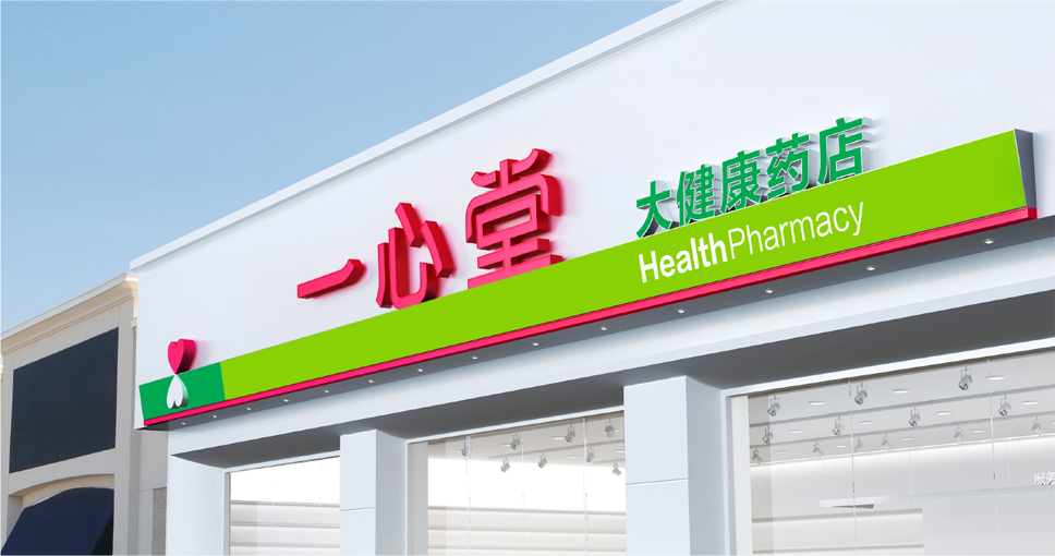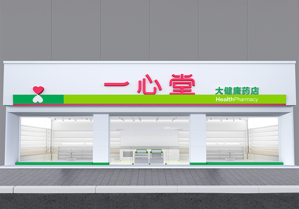 集團(tuán)與藥店沿用綠色和紅色的基調(diào),綠色是健康,紅色是愛,一心堂用愛守護(hù)健康,把健康平臺(tái)的概念最直觀地傳遞給消費(fèi)者。
