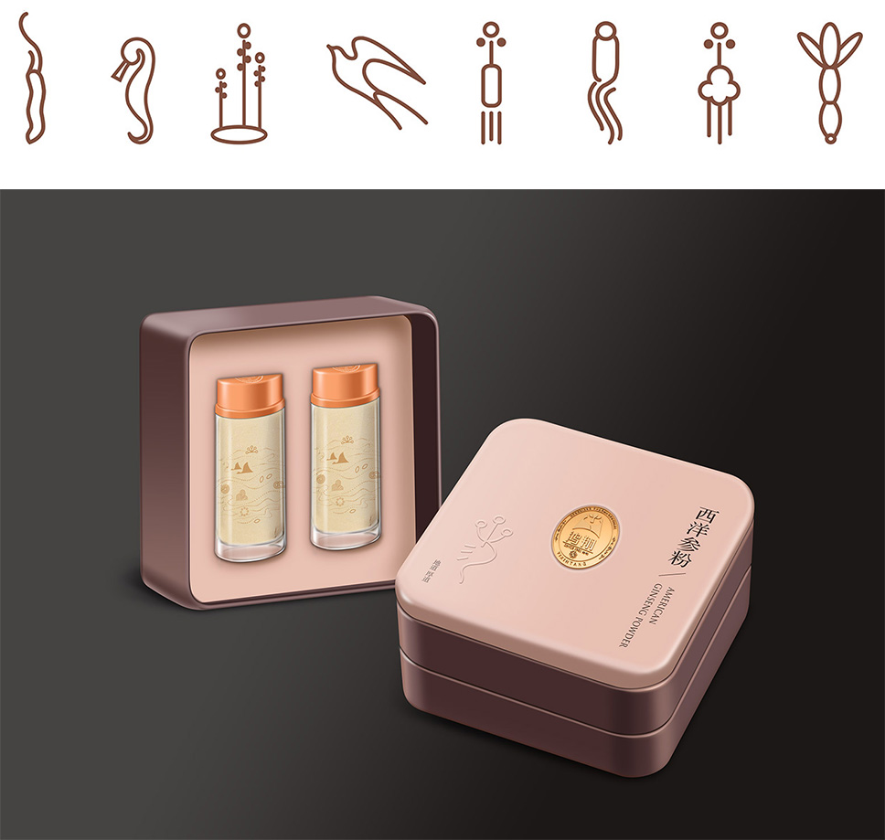 高端品質(zhì)、簡潔干凈,李華清提取品牌元素創(chuàng)意延伸,規(guī)范鴻翔中藥貴細禮盒包裝。獨特的造型和色彩聚焦消費者的視覺中心,提升品牌視覺第一印象,有力傳播品牌,實現(xiàn)產(chǎn)品的自動營銷。