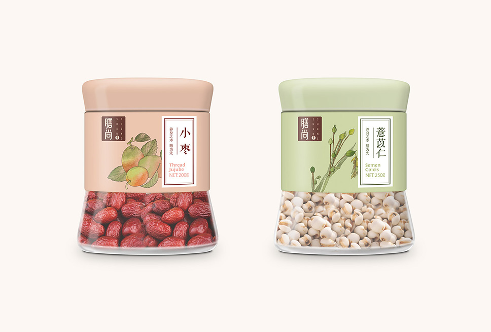 在同類產(chǎn)品還都是普通塑料圓柱瓶的時(shí)候,膳尚的包裝造型可以說(shuō)是非常特別了。這個(gè)趣味十足的設(shè)計(jì)不僅成功與用戶建立情感連接,方便用戶最快形成品牌印象;同時(shí),敦厚的造型展示產(chǎn)品容量滿滿,滿足用戶心理對(duì)于產(chǎn)品“量”的需求。