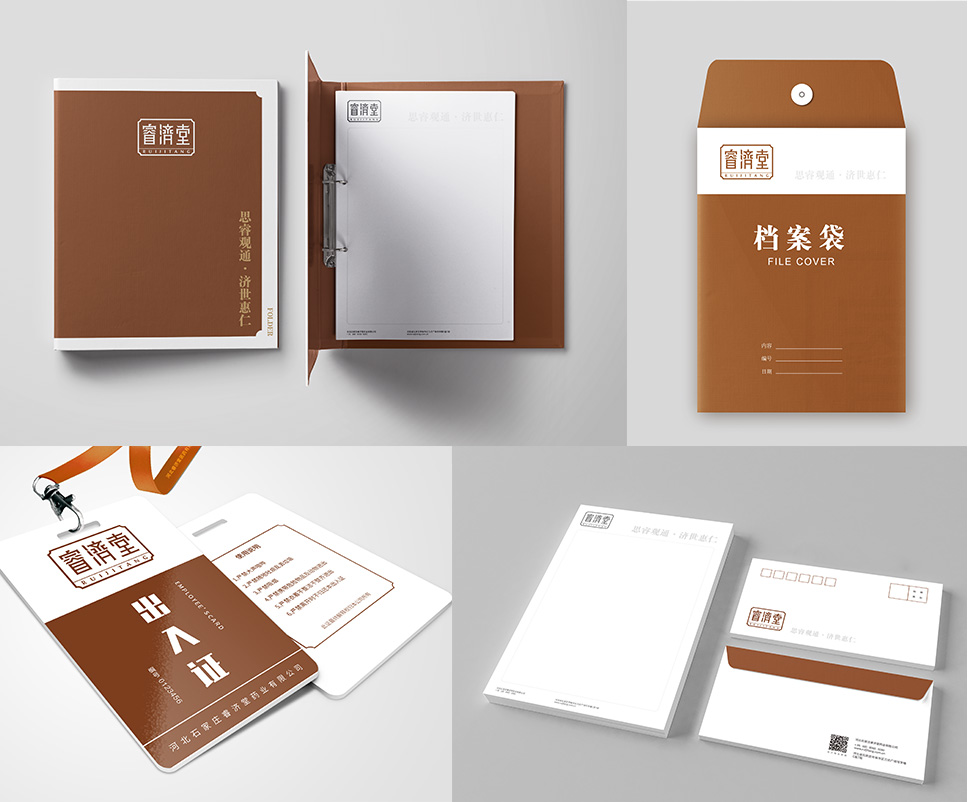 “睿濟堂”品牌形象運用傳統(tǒng)宮殿建筑中翹角房檐設計體現(xiàn)在標志筆畫中,傳達出企業(yè)的深厚中華傳統(tǒng)文化內(nèi)涵;山水皆是自然之物,體現(xiàn)睿濟堂醫(yī)藥行業(yè)屬性,象征企業(yè)抱有濟世惠仁之心,希望如水一般,將善分布四海八方,幫助更多的人。