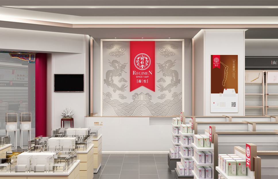 隨著更多年輕人對養(yǎng)生的意識越來越強(qiáng),必須要適應(yīng)他們的消費習(xí)慣,而門店終端形象直接就影響著商品的成交率。于是為了迎合當(dāng)下時代的發(fā)展,提升年輕市場的占比,我們在升級了養(yǎng)生專柜后,對同仁堂參茸蟲草專賣店也進(jìn)行了重新開發(fā)升級。