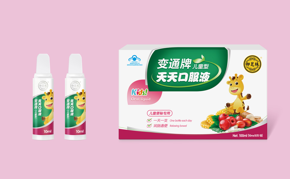 針對“變通”牌天天口服液兒童型,除了表達產(chǎn)品特征以及屬性之外,為了吸引消費者視覺需求,在包裝上形成視覺焦點,李華清項目團隊找到了長頸鹿這一元素,富有親和力的長頸鹿,是每個孩子熟悉、喜愛的動物形象,傳遞品牌對孩子快高長大的祝愿,同時長頸鹿天性溫順、平和,傳遞出產(chǎn)品溫和、自然的特性。