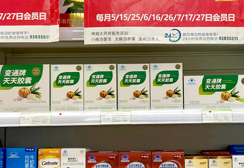 李華清為“御芝林變通”牌通便膠囊包裝打造位置商標,形成品牌獨有資產(chǎn),塑造品牌記憶點,延伸產(chǎn)品好感度。兩款包裝終端呈現(xiàn)系列和家族感。
