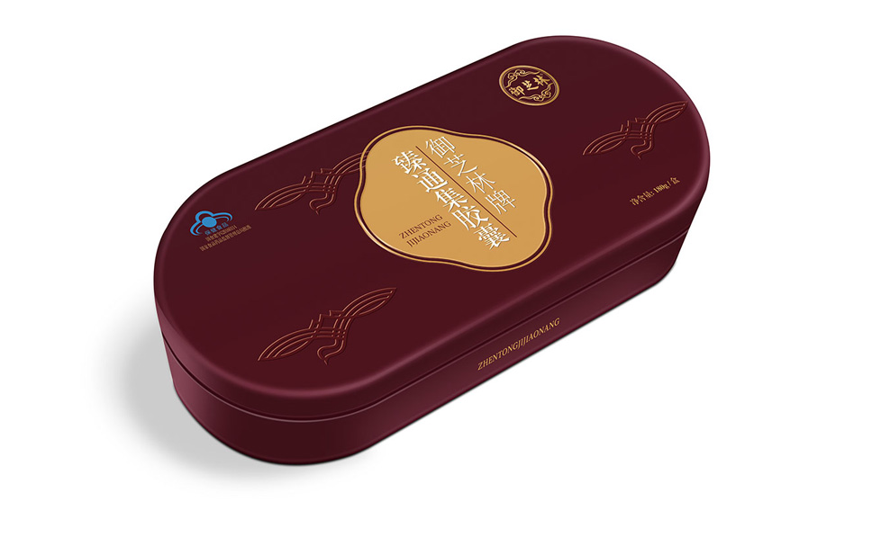 臻通集膠囊的定位人群為中老年人,具有輔助降血脂、增強免疫力的保健功能,李華清通過前期的分析,在視覺表現(xiàn)上運用樹、心形、頭腦、手等元素進行組合,形成臻通集膠囊戰(zhàn)略元素,達到視覺聚焦效果,抽象畫的圖形,用金色戰(zhàn)略色彩體現(xiàn),更具有品質感。