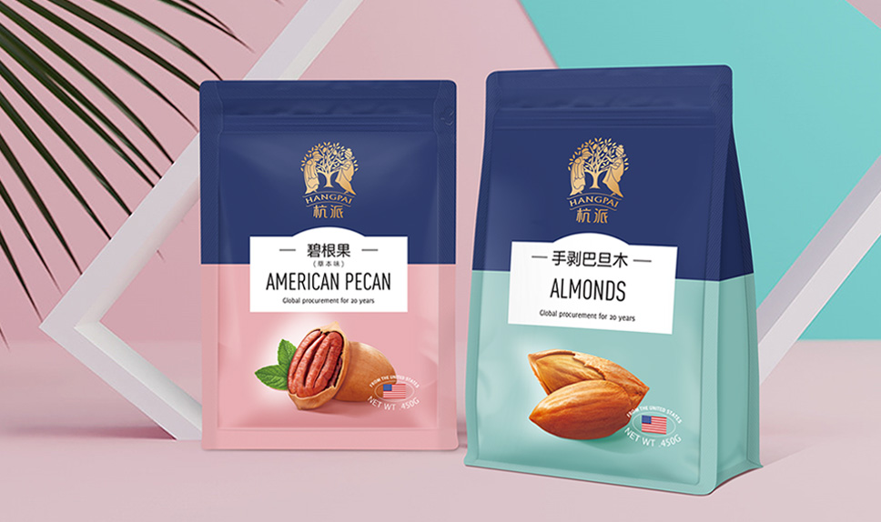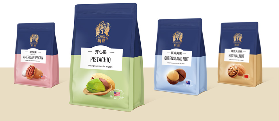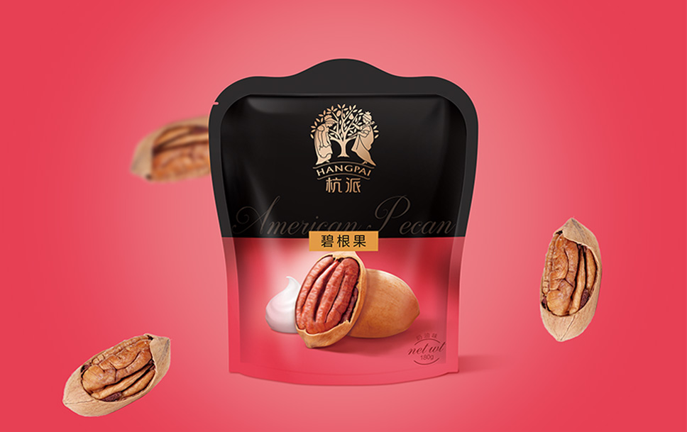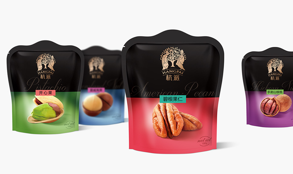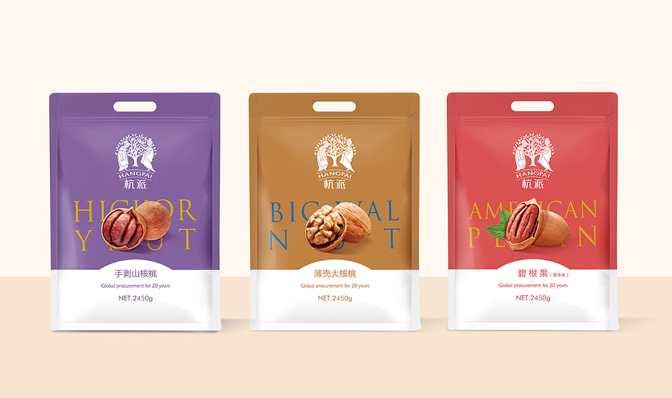 李華清項(xiàng)目團(tuán)隊(duì)將書(shū)手抓包采用透明pe袋,能讓消費(fèi)者直觀看到堅(jiān)果實(shí)物,飽滿(mǎn)的堅(jiān)果,甚至能透過(guò)包裝袋就能感受到香氣四溢出來(lái),營(yíng)造消費(fèi)者心里的滿(mǎn)足感和食欲感,增加受眾對(duì)品質(zhì)的信任度。同時(shí)核心視覺(jué)元素延用杭派戰(zhàn)略資產(chǎn),達(dá)到包裝視覺(jué)聚焦的效果,在終端的不斷市場(chǎng)傳播中,形成杭派強(qiáng)有力的品牌資產(chǎn)。