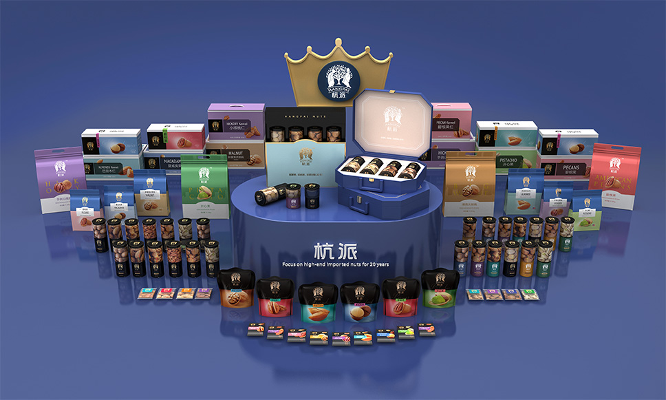 堅(jiān)守杭派不可復(fù)制的產(chǎn)品力,以20年堅(jiān)果行業(yè)先驅(qū)者和領(lǐng)導(dǎo)者的身份進(jìn)軍零售市場(chǎng)。突出全球化概念,打造全球化堅(jiān)果品牌形象,用數(shù)字突出品牌的實(shí)力和專(zhuān)業(yè),具有鮮明識(shí)別性和記憶點(diǎn)。為未來(lái)杭派打造世界堅(jiān)果文化戰(zhàn)略目標(biāo)做鋪墊。